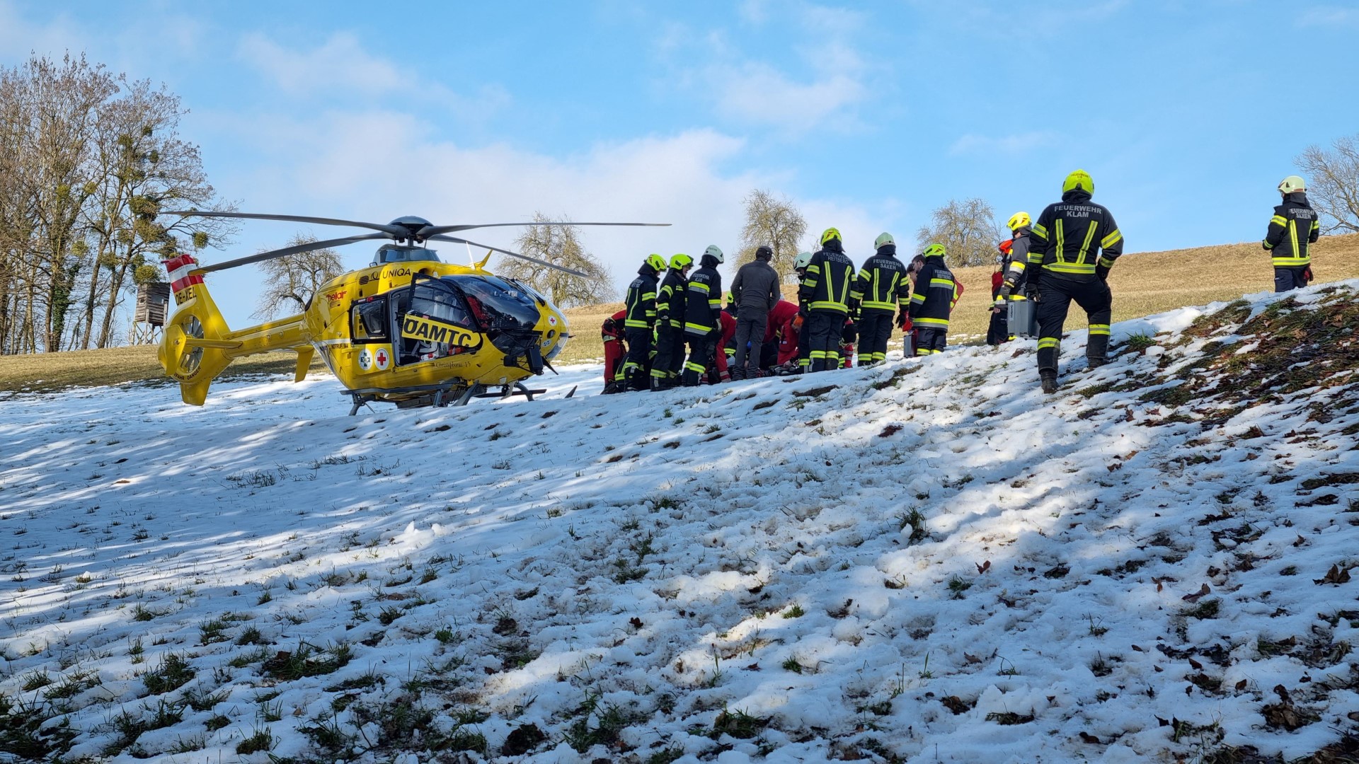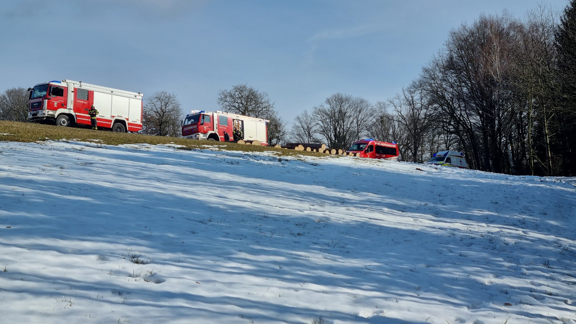 Nur kurze Zeit nach der Samstag-Sirenenprobe heulten am 31.01.2026 erneut die Sirenen. "Person unter Traktorreifen eingeklemmt" lautete die Einsatzmeldung. Unsere Mannschaft rückte mit dem Rüstlöschfahrzeug zum Einsatzort in Saxen aus. Gemeinsam mit der Feuerwehr Saxen und der Feuerwehr Reitberg wurde zunächst der Traktor im abschüssigen Gelände gegen ein mögliches Wegrollen gesichert. Anschließend konnte die eingeklemmte Person mithilfe von Hebekissen befreit und der Rettung übergeben werden.
