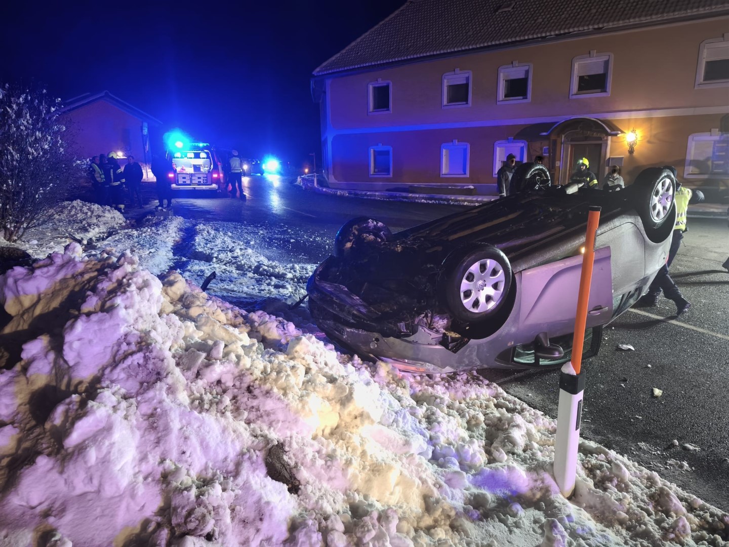 Am Abend des 20. Februar 2026 wurden wir während einer laufenden Versammlung mittels Sirene zu einem Verkehrsunfall nach Unterhörnbach alarmiert. Aufgrund der anwesenden Mannschaft konnten wir innerhalb kurzer Zeit mit 3 Fahrzeugen ausrücken. Am Einsatzort fanden wir einen PKW vor, der am Dach zum Liegen gekommen war. Eine Person wurde vom Rettungsdienst versorgt und betreut.